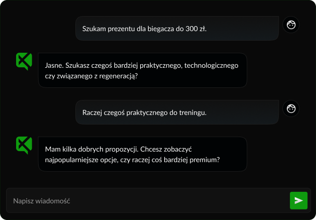 X-TALK Commerce proponuje produkty na podstawie kontekstu rozmowy, preferencji i kolejnych pytań użytkownika.